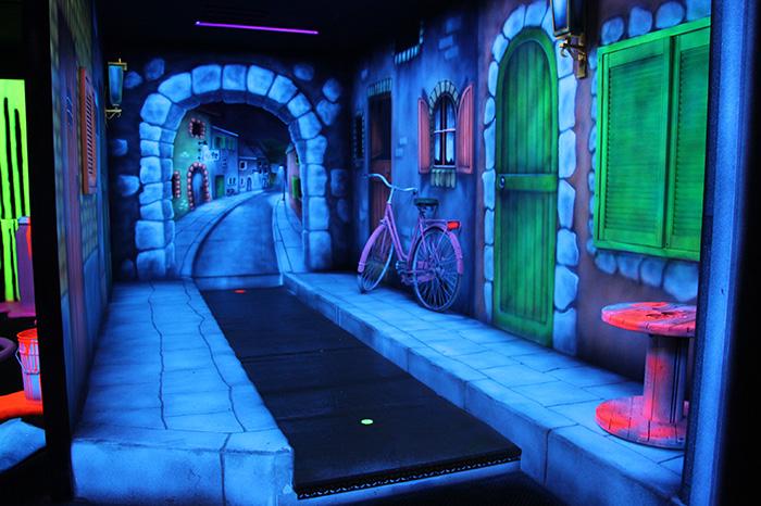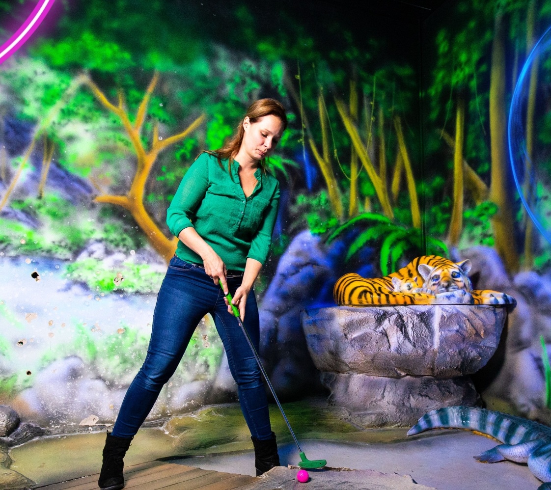 Kom golfen in het donker met een spectaculair decor. Leuk voor kinderen vanaf 8 jaar.